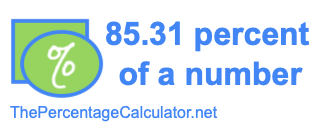 We made the tool below just in case you don't have a calculator available. Simply enter any Number and press "Calculate" to get 85.31 percent of that number.