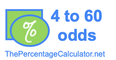 4 to 60 odds is not the only odds we have the answer to. Enter odds to learn the meaning here.