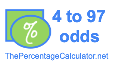 4 to 97 odds is not the only odds we have the answer to. Enter odds to learn the meaning here.