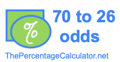 "What does 70 to 26 odds mean?" Here we will tell you what 70 to 26 odds mean, what 70 to 26 probability means, and show you what a 70 to 26 odds payout would be.