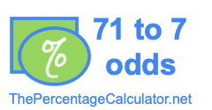 "What does 71 to 7 odds mean?" Here we will tell you what 71 to 7 odds mean, what 71 to 7 probability means, and show you what a 71 to 7 odds payout would be.