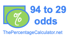 "What does 94 to 29 odds mean?" Here we will tell you what 94 to 29 odds mean, what 94 to 29 probability means, and show you what a 94 to 29 odds payout would be.