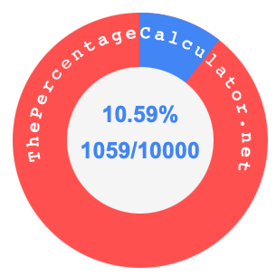 Here we will not only show you how to convert 10.59 percent to a fraction (10.59% as a fraction), but also illustrate 10.59 percent and 10.59 as a fraction on a pie chart.