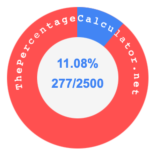 The illustration below shows 11.08 percent and 11.08 as a fraction on a pie chart. As you now know, 11.08% is the same as 277/2500.