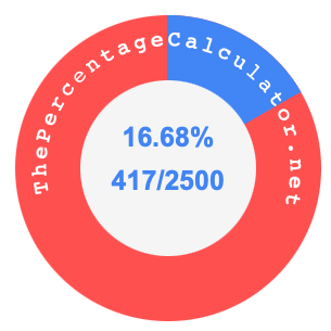 The illustration below shows 16.68 percent and 16.68 as a fraction on a pie chart. As you now know, 16.68% is the same as 417/2500.