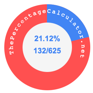 The illustration below shows 21.12 percent and 21.12 as a fraction on a pie chart. As you now know, 21.12% is the same as 132/625.