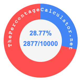 The illustration below shows 28.77 percent and 28.77 as a fraction on a pie chart. As you now know, 28.77% is the same as 2877/10000.