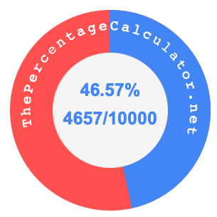 Here we will not only show you how to convert 46.57 percent to a fraction (46.57% as a fraction), but also illustrate 46.57 percent and 46.57 as a fraction on a pie chart.