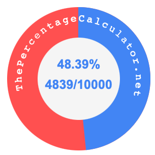The illustration below shows 48.39 percent and 48.39 as a fraction on a pie chart. As you now know, 48.39% is the same as 4839/10000.