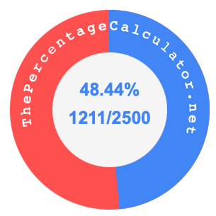 The illustration below shows 48.44 percent and 48.44 as a fraction on a pie chart. As you now know, 48.44% is the same as 1211/2500.