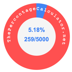 The illustration below shows 5.18 percent and 5.18 as a fraction on a pie chart. As you now know, 5.18% is the same as 259/5000.