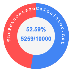 Here we will not only show you how to convert 52.59 percent to a fraction (52.59% as a fraction), but also illustrate 52.59 percent and 52.59 as a fraction on a pie chart.
