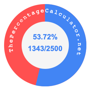 The illustration below shows 53.72 percent and 53.72 as a fraction on a pie chart. As you now know, 53.72% is the same as 1343/2500.