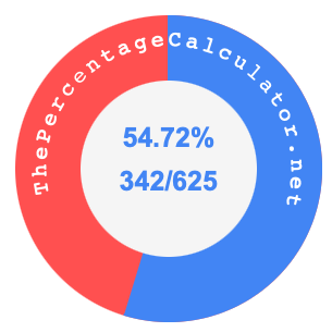 The illustration below shows 54.72 percent and 54.72 as a fraction on a pie chart. As you now know, 54.72% is the same as 342/625.