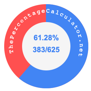 The illustration below shows 61.28 percent and 61.28 as a fraction on a pie chart. As you now know, 61.28% is the same as 383/625.