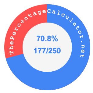 The illustration below shows 70.8 percent and 70.8 as a fraction on a pie chart. As you now know, 70.8% is the same as 177/250.