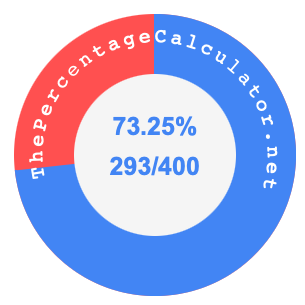 The illustration below shows 73.25 percent and 73.25 as a fraction on a pie chart. As you now know, 73.25% is the same as 293/400.