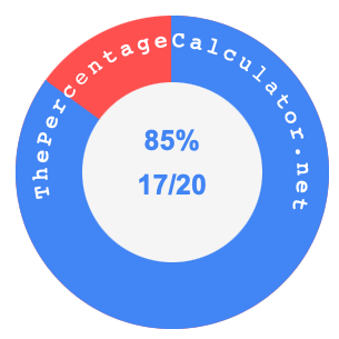 The illustration below shows 85 percent and 85 as a fraction on a pie chart. As you now know, 85% is the same as 17/20.