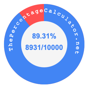 Here we will not only show you how to convert 89.31 percent to a fraction (89.31% as a fraction), but also illustrate 89.31 percent and 89.31 as a fraction on a pie chart.