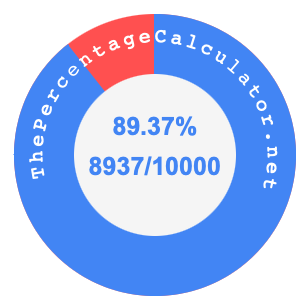 Here we will not only show you how to convert 89.37 percent to a fraction (89.37% as a fraction), but also illustrate 89.37 percent and 89.37 as a fraction on a pie chart.