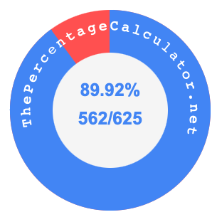 The illustration below shows 89.92 percent and 89.92 as a fraction on a pie chart. As you now know, 89.92% is the same as 562/625.