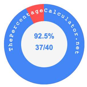 The illustration below shows 92.5 percent and 92.5 as a fraction on a pie chart. As you now know, 92.5% is the same as 37/40.