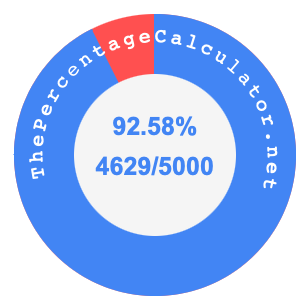 The illustration below shows 92.58 percent and 92.58 as a fraction on a pie chart. As you now know, 92.58% is the same as 4629/5000.