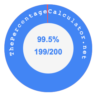 The illustration below shows 99.5 percent and 99.5 as a fraction on a pie chart. As you now know, 99.5% is the same as 199/200.