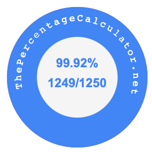 The illustration below shows 99.92 percent and 99.92 as a fraction on a pie chart. As you now know, 99.92% is the same as 1249/1250.