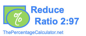 Here we will reduce the ratio 2:97 as much as possible. In other words, we will make the numbers 2 and 97 as low as they can be while still keeping the same ratio between the two numbers.