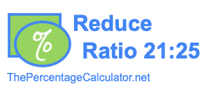 Here we will reduce the ratio 21:25 as much as possible. In other words, we will make the numbers 21 and 25 as low as they can be while still keeping the same ratio between the two numbers.