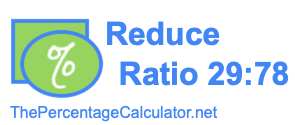 Here we will reduce the ratio 29:78 as much as possible. In other words, we will make the numbers 29 and 78 as low as they can be while still keeping the same ratio between the two numbers.