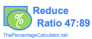 Here we will reduce the ratio 47:89 as much as possible. In other words, we will make the numbers 47 and 89 as low as they can be while still keeping the same ratio between the two numbers.
