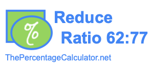 Here we will reduce the ratio 62:77 as much as possible. In other words, we will make the numbers 62 and 77 as low as they can be while still keeping the same ratio between the two numbers.