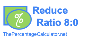To summarize, the ratio 8:0 reduced as much as possible is 1:0. You could also say that the ratio 8:0 equals 1:0.