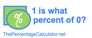 When you ask "1 is what percent of 0?" you are asking what share per hundred (percent) 1 is of 0 (1 is what % of 0?). To show you how to calculate the answer we start by displaying the percent formula below:
