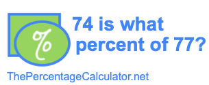 When you ask "74 is what percent of 77?" you are asking what share per hundred (percent) 74 is of 77 (74 is what % of 77?). To show you how to calculate the answer we start by displaying the percent formula below: